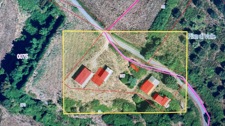 In posizione dominante sulla vallata è situato un fabbricato rurale di superficie complessiva di circa mq. 220, disposto su 2 livelli (piano terra: 138 mq, piano primo: 82 mq).